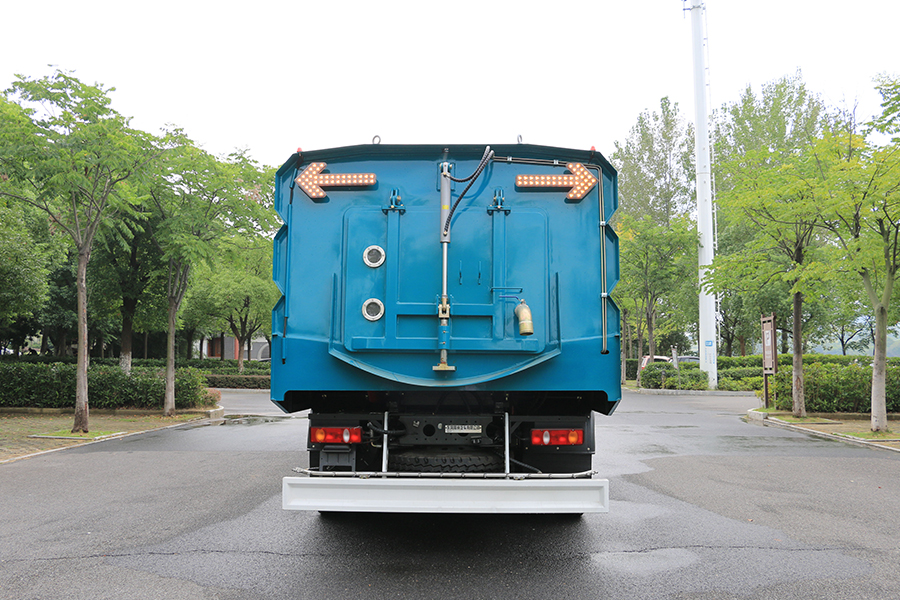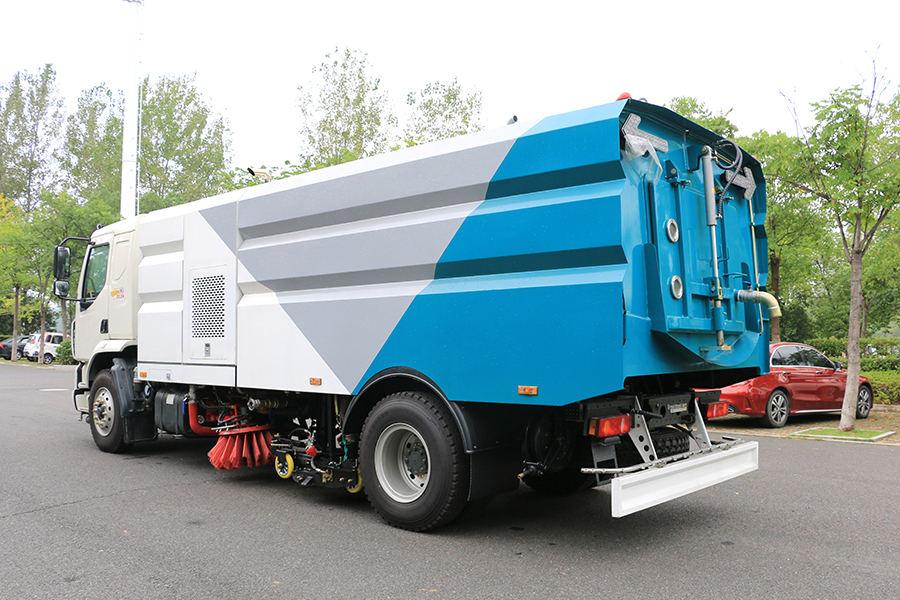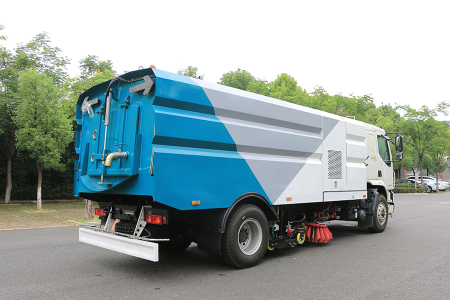 進行路面清掃抽吸作業;又可作為高壓沖洗車進行路面沖洗抽吸作業;還可將路面清掃抽吸與高壓沖水組合作為洗掃車使用,實現清掃、沖洗、抽洗的多種組合選擇使用,以滿足不同用戶的多種需求,該車可廣泛適用于城區主干路及高架橋的沖洗、清掃作業。