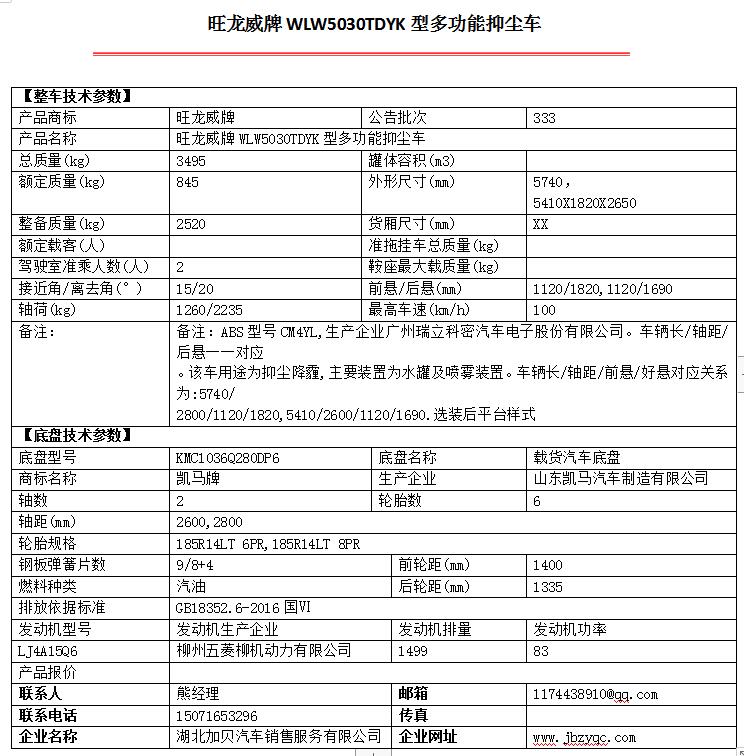 旺龍威牌WLW5030TDYK型多功能抑塵車