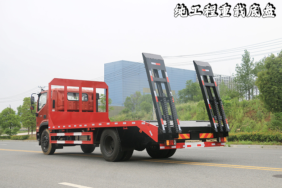 平板運輸車又名為工程機械運輸車、平板車、低平板運輸車,主要用于運輸一些像挖掘機,裝載機,收割機一樣的不可拆卸物體。平板運輸車是生活中常見的大型載重貨車,這種車一般被廣泛用于工廠,工地等大型生產或工程所在地,平板運輸車的承重能力強的特點使其在經濟發(fā)展過程中起了重要作用。
