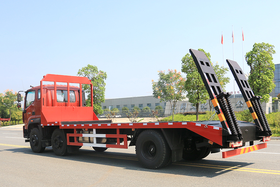 平板運輸車又名為工程機械運輸車、平板車、低平板運輸車,主要用于運輸一些像挖掘機,裝載機,收割機一樣的不可拆卸物體。平板運輸車是生活中常見的大型載重貨車,這種車一般被廣泛用于工廠,工地等大型生產或工程所在地,平板運輸車的承重能力強的特點使其在經濟發(fā)展過程中起了重要作用。