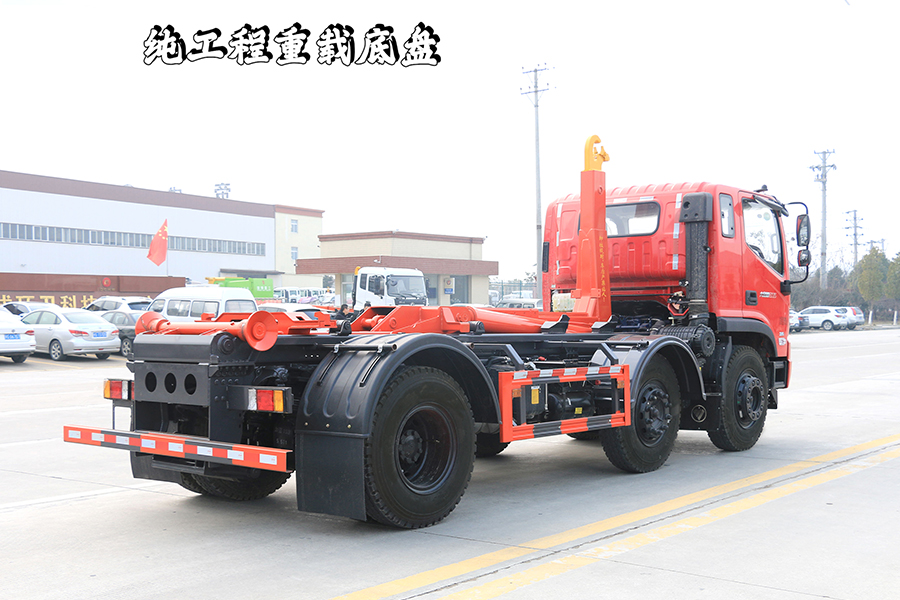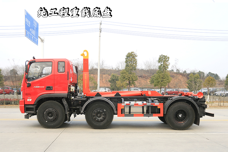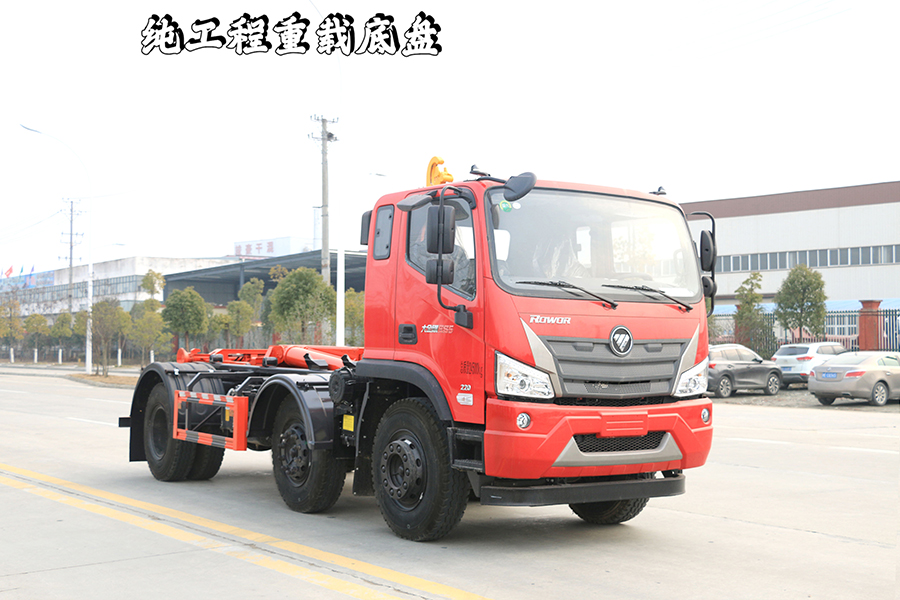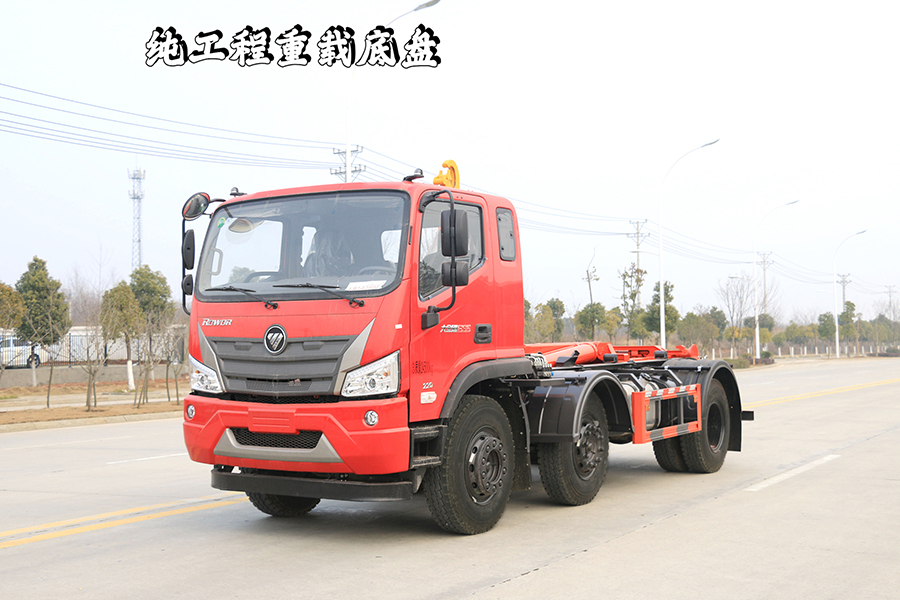 專用底盤:工程車底盤,承載能力強,掛上移動垃圾站總重為26.85噸;空調、助力轉向;國六發動機,濰柴220馬力,動力強勁,經濟環保;
