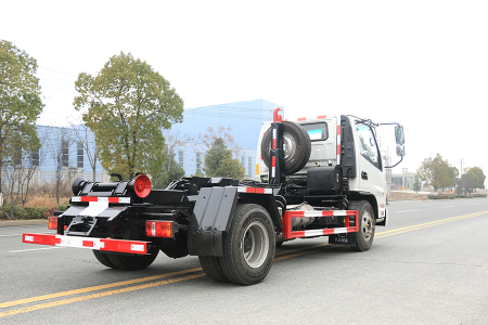 (5) 作業自動化:采用光電開關加時間雙系統控制,帶一鍵卸料,帶無線遙控裝置,全部填裝排卸作業中只需司機一人操作,可設定全自動和半自動 2 種操作模式,不僅減輕環衛工人的勞動強度, 而且大大改善了工作環境。