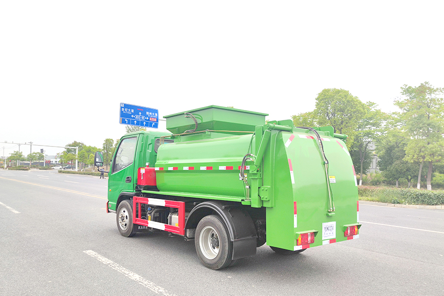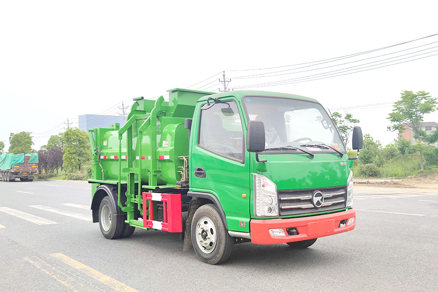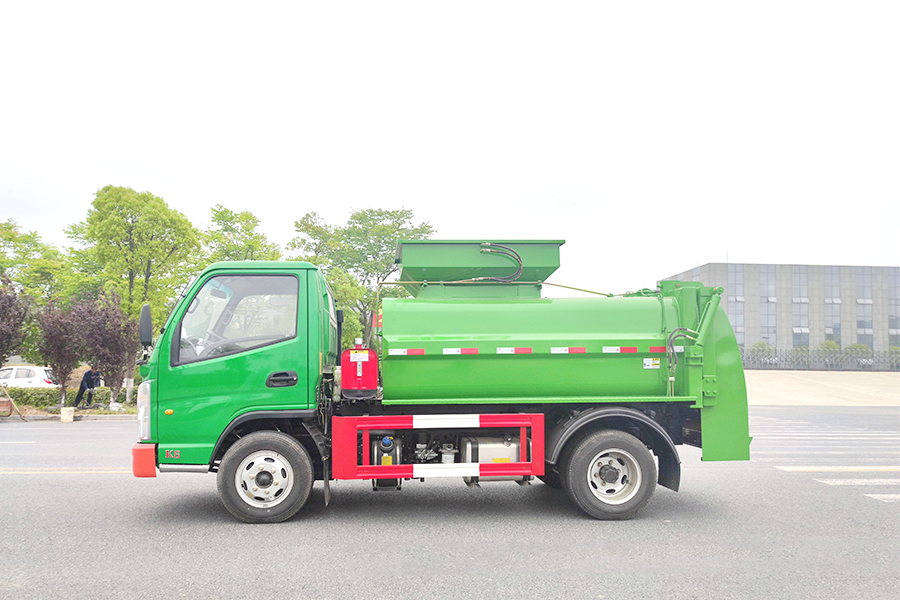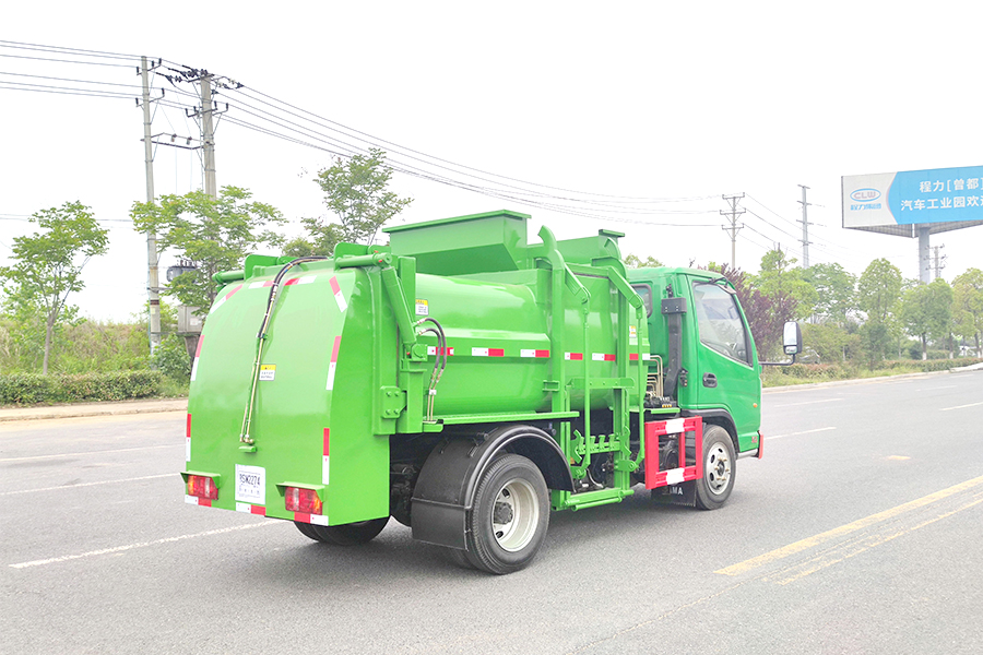 餐廚垃圾車裝載由垃圾桶提升系統完成,該系統具有垃圾桶鎖止結構,裝卸安全可靠。垃圾桶與垃圾投入口銜接好,保證裝卸過程中餐廚垃圾不溢撒、不遺漏。垃圾投入口與推板之間有足夠距離,推板與罐體內表面設有密封裝置,避免餐廚垃圾投入過程及分離過程中溢到推板后方。液壓系統由泵、液壓閥和順序閥以及各種功能的液壓油缸、高低壓管路組成。關鍵部件可選用原裝進口,保證產品工作可靠、安全。