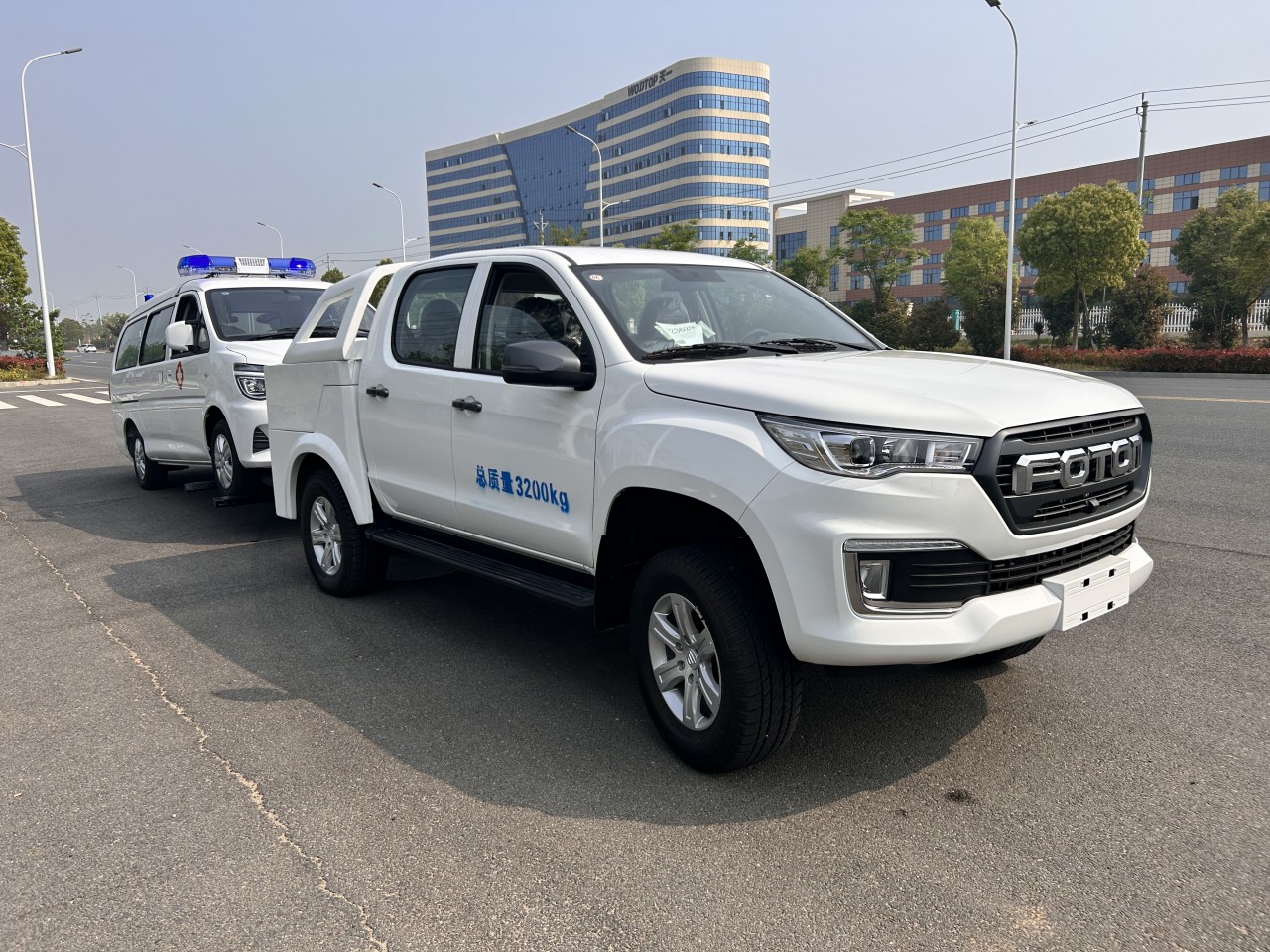 基于福田勝途5底盤改造而成,型號BJ1037V3MA6-1D,歐康2.0T-163馬力國六柴油發動機,6檔手動變福田皮卡BJ1037V3MAV-8A二類底盤,3110軸距,歐康120kw(163馬力,2.0T柴油發動機,)雙排5人座,采埃孚8AT變速箱,熏黑鹵素大燈/265/65R17輪胎/鋁合金輪輞/仿皮座椅/ABS+EBD/前盤后鼓/前排普通三點式安全帶/后排中間兩點式兩邊三點式安全帶/LED日間行車燈/前霧燈/大燈延時關閉/側踏板/內后視鏡手動防眩目/A柱扶手/點陣屏儀表/仿皮多功能方向盤/主駕座椅手動6向調節/副駕座椅手動4向調節/雙氣囊/剎車輔助/倒車雷達/發動機防盜/定速巡航/8寸MP5/倒車影像/藍牙電話/電動空調/一鍵啟動/機艙蓋氣動撐桿/4揚聲器/后保險杠/胎壓監測 速箱,軸距3105mm,彈簧片數-/5,245/70R16輪胎,總質量2885Kg,帶方向助力,原廠離合助力,原廠空調, 可調大燈,倒車雷達,駕乘人數2+3,空間寬敞,駕乘舒適。