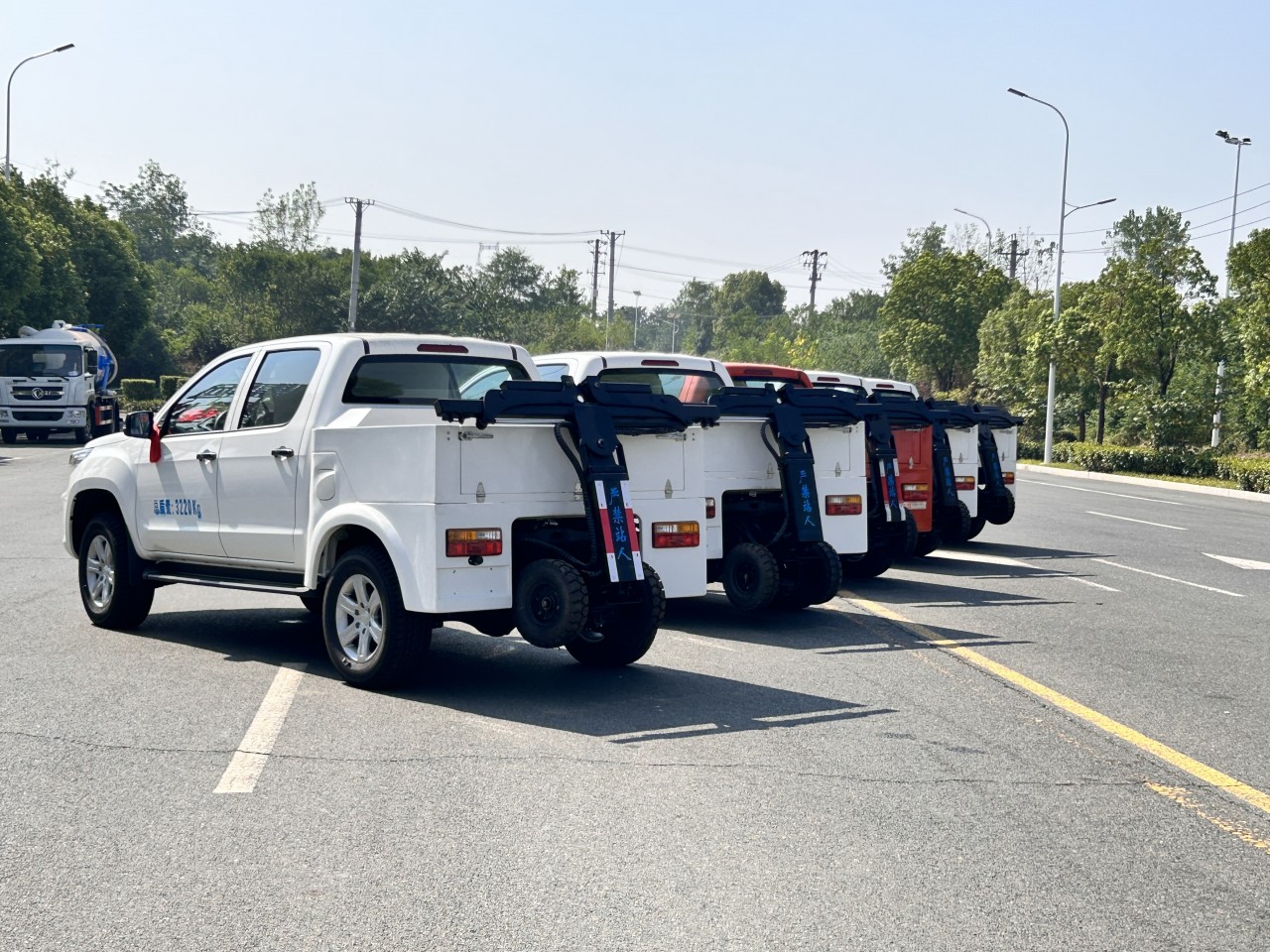 玻璃鋼加厚廂體,配無線遙控真正的全自動抱胎,備用線控按鈕,鋼板加強,3噸電動液壓單元,雙油缸托舉拖臂,遙控調節輔助輪升降,抱胎伸縮自動定義,進口部件,進口油封,兩種輔助小車任選2件,新型綁帶4條