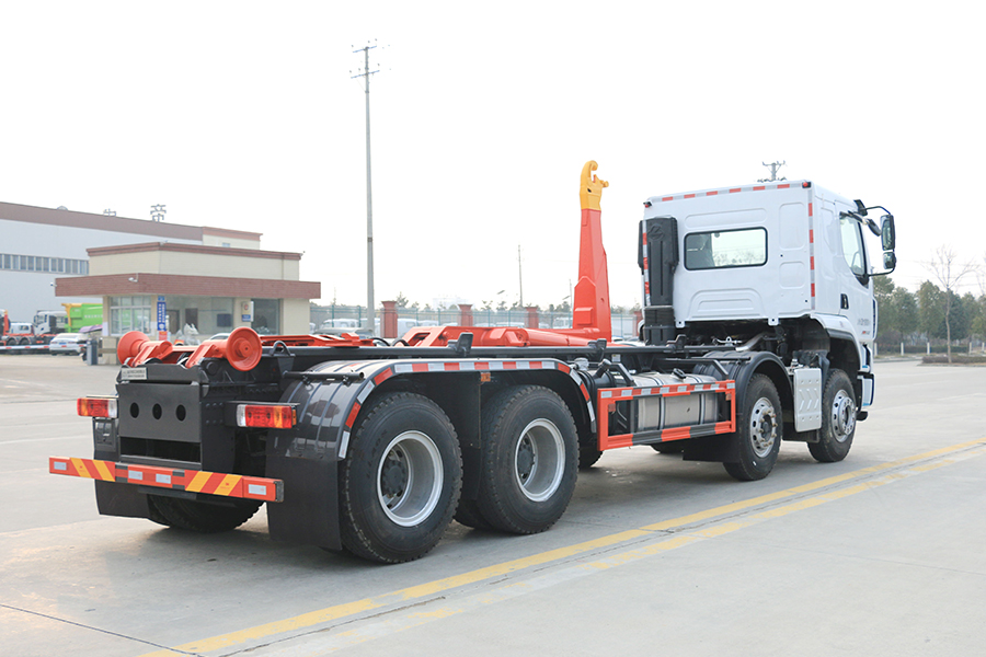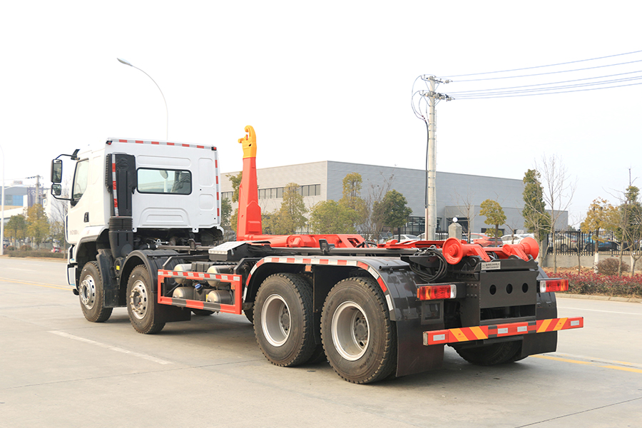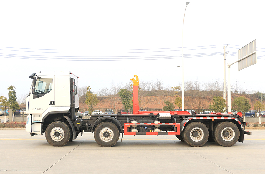車廂可卸載式垃圾車,又稱勾臂式垃圾車、拉臂式垃圾車。該車廣泛適用與城市街道學校垃圾處理,可一車配備多個斗,各個垃圾點放置多個。