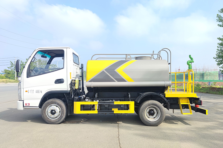 凱馬藍(lán)牌灑水車,標(biāo)配前沖、后灑、側(cè)噴、后置式工作平臺、平臺上有高壓水炮(可360°旋轉(zhuǎn),可調(diào)成柱狀最大射程35米,也可調(diào)成霧狀最大射程15米,可調(diào)成:直沖狀、大雨、中雨、小雨、毛毛雨),配備優(yōu)質(zhì)大功率專用灑水泵,取力器,雜物過濾網(wǎng),國標(biāo)通用65型消防接口(可通過消防栓加水)、1套自流球閥系統(tǒng)(可自吸自排,可從河里或池塘抽水到罐體,最大吸程7米),2根引水鋼絲膠管。水泵、取力器、球閥、濾網(wǎng)均為國家標(biāo)準(zhǔn)產(chǎn)品,主管道加粗,法蘭墊、法蘭盤加厚,萬向前沖,大通徑球閥,具有性能優(yōu)良,工作可靠、效率高、流量大、維修方便等特點(diǎn)。