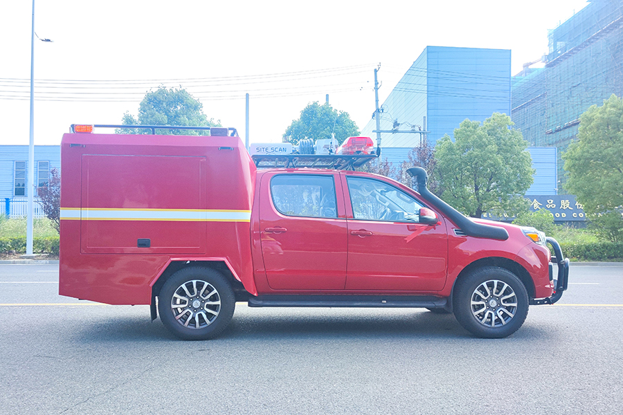 前防撞鋼梁,涉水喉,車頂警燈,喊話器,遙控升降照明燈,車載電臺等。