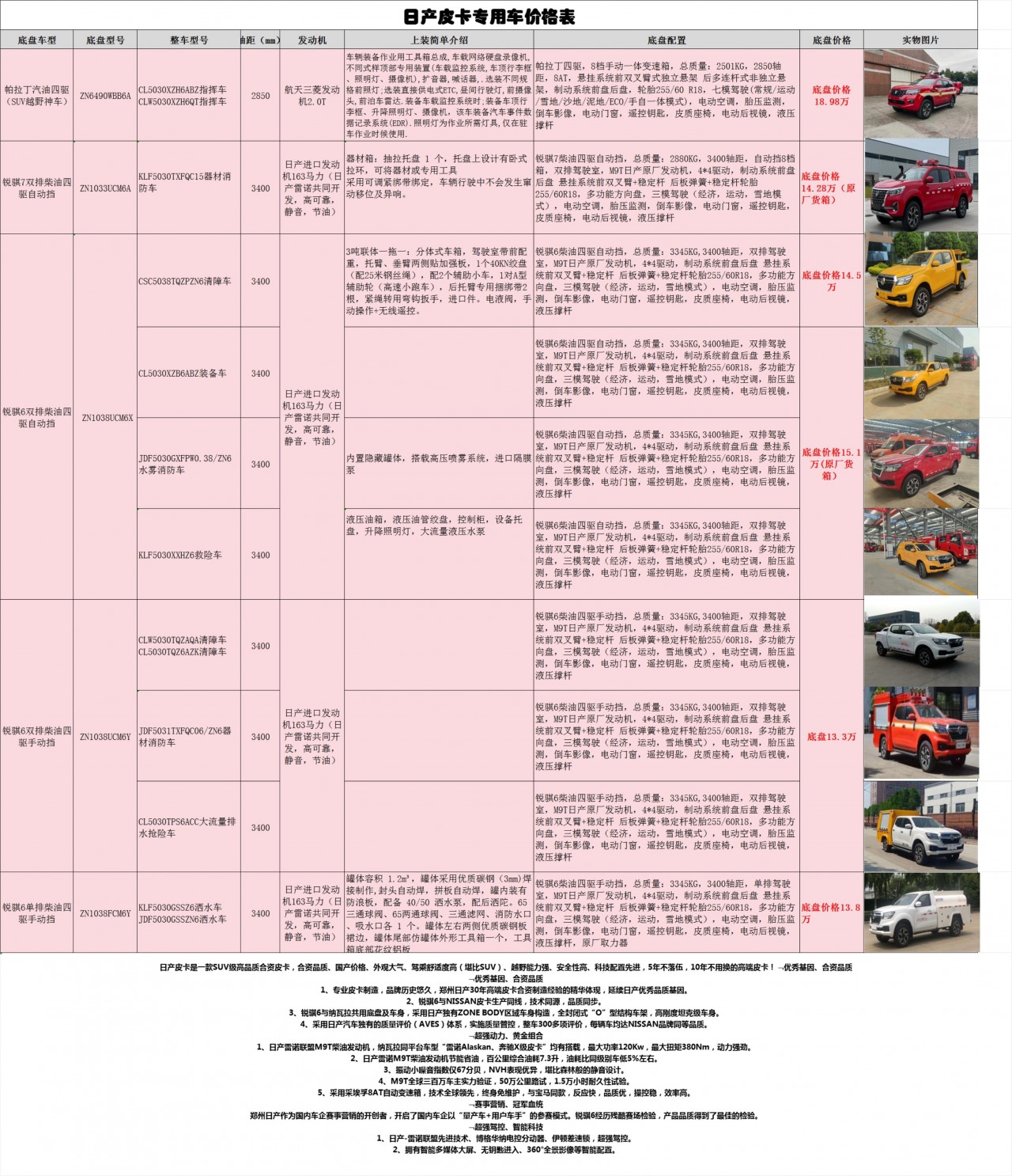 湖北加貝汽車銷售服務(wù)有限公司,產(chǎn)品品種多,材質(zhì)過硬、重工工藝、軍工管理、質(zhì)量、售后服務(wù)可以保證,東風(fēng)日產(chǎn)2024年皮卡價(jià)格表購買您應(yīng)該放心!