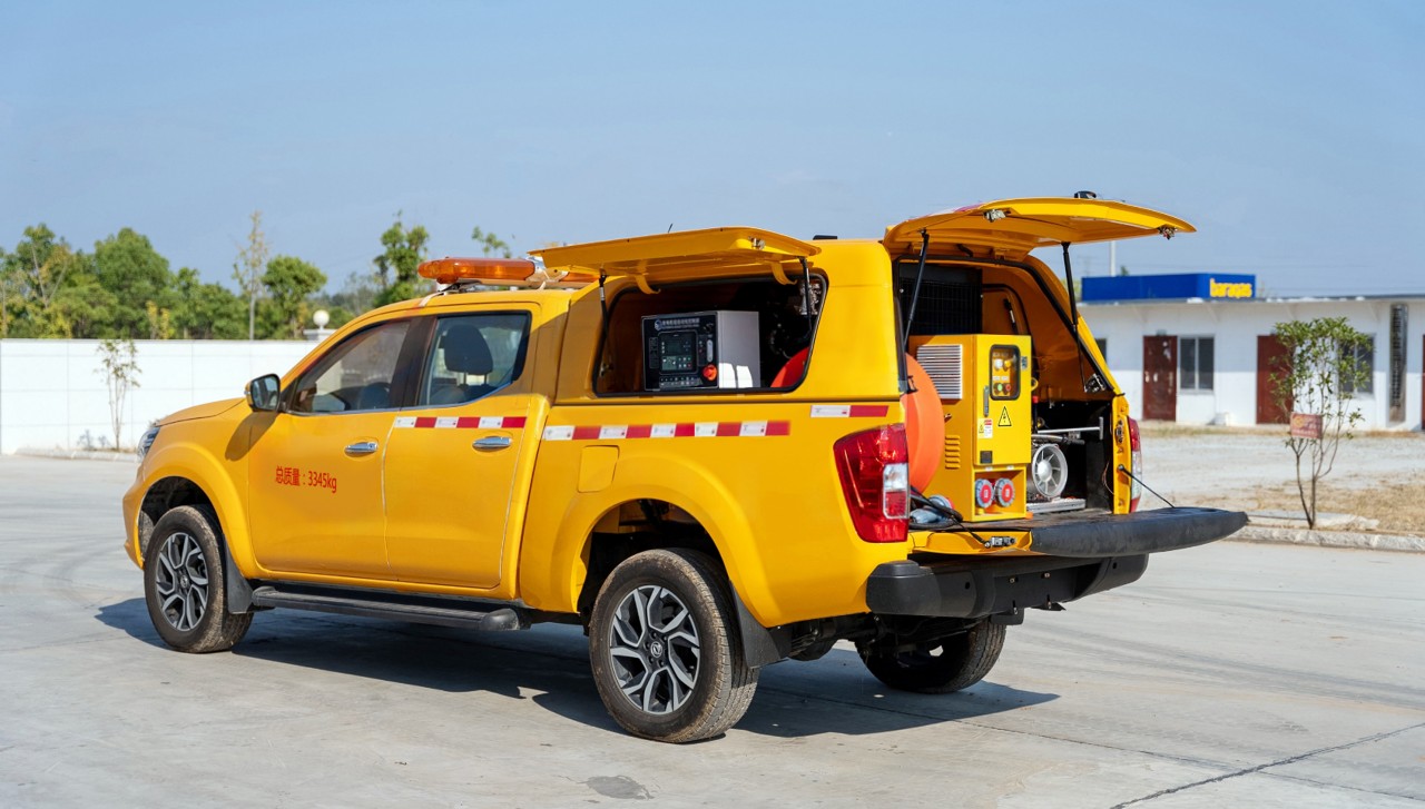 車輛配套獨立的柴油發(fā)電機組,主用輸出額定功率≥30KW;柴油機排放滿足國三要求;機組油箱容積可滿足發(fā)電機組持續(xù)8-10小時。采用智能控制系統(tǒng),集中控制,帶機組控制屏,中文界面,可顯示水溫、油壓、速度、電流、電壓等,具有自動障礙保護功能,選用優(yōu)質(zhì)電氣元件,性能穩(wěn)定,箱體尾部配置接地防護裝置,安全可靠。