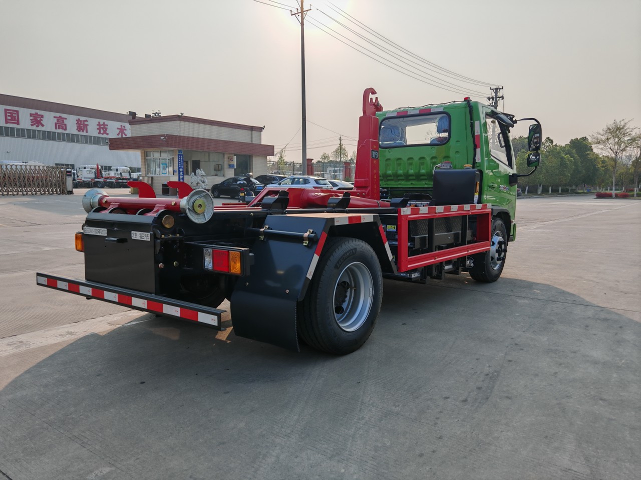 由底架、翻轉架、拉臂鉤和鎖緊機構組成,可完成對密封式垃圾車廂的鉤裝、鉤卸和卸料作業(yè)。